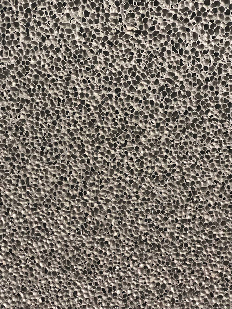 發(fā)泡鋁是以氫化鈦為增粘劑和發(fā)泡劑,加入熔融的鋁中攪拌而制成的。是一種集結(jié)構(gòu)-性能一體化的新型功能材料,內(nèi)部是有許多的氣泡層形成的新概念金屬材料一般用金屬做的多孔性材料,它是比重2.7的金屬鋁發(fā)泡而成比重只有0.2-0.4的超輕純金屬材料,體積擴(kuò)大了13倍,重量只相當(dāng)于木材的三分之一。和開(kāi)孔泡沫鋁相對(duì)閉孔發(fā)泡鋁沒(méi)有吸聲性能,但是其也有非常良好的吸能及電子屏蔽電磁波的作用,這些特性使它在軍事,火車(chē),輪船,建筑等領(lǐng)域受到廣泛重視。